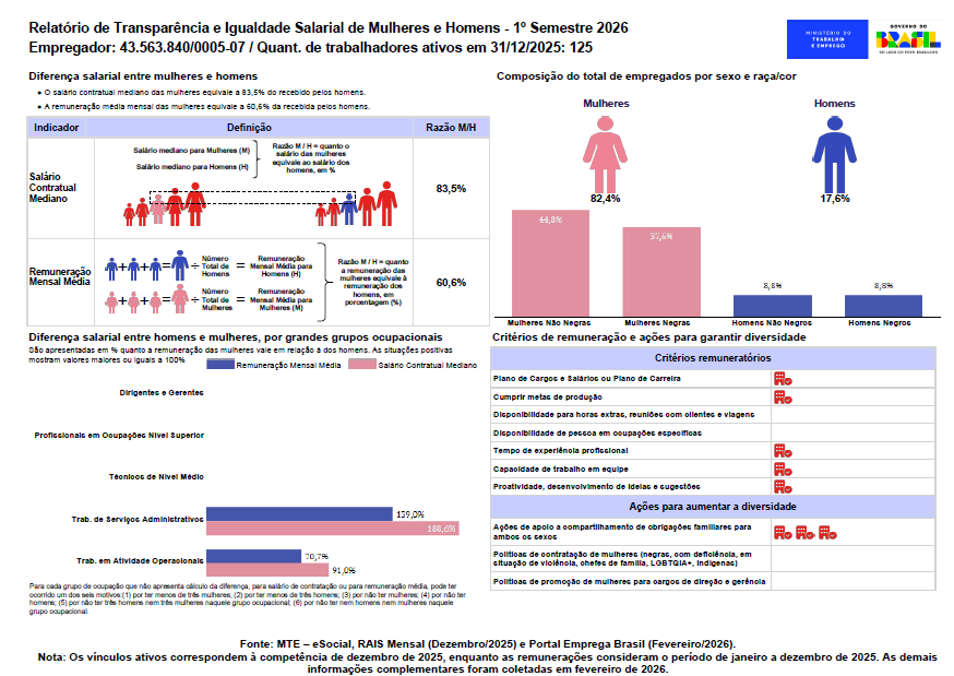 Ao compartilhar este relatório, cumprimos a determinação legal de divulgação pública das informações. Reafirmamos nosso compromisso com a transparência e a missão de criar um espaço de trabalho inclusivo e justo para todos os colaboradores, por meio de práticas e políticas de diversidade e inclusão já divulgadas pela empresa.